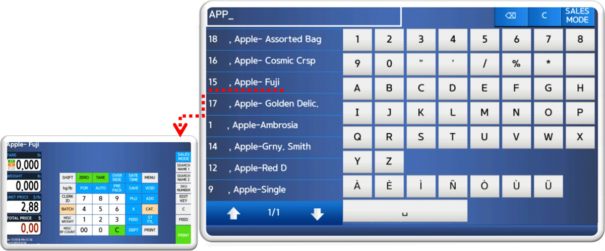 2. Search will filter PLU's based on input. When you select a PLU, it will bring you directly to that item.
