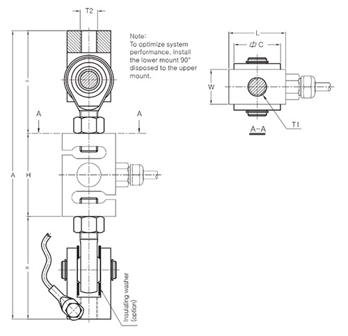Isolated tension mount assembly available with a stainless steel potted S beam load cell with either a galvanized steel or stainless steel mount. Capacities range from 220 lbs to 11,000 lbs.