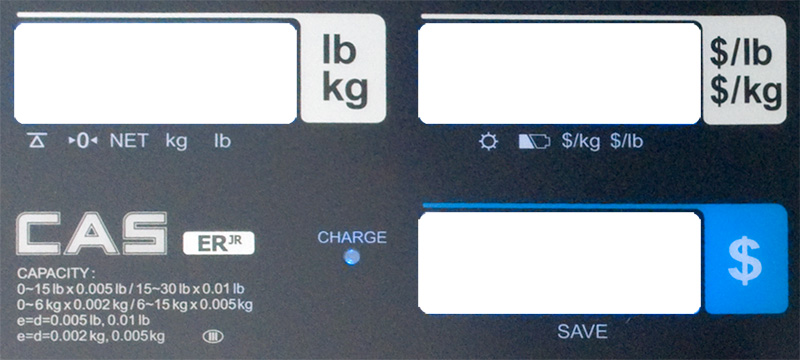 The ER Jr price computing scale is built for top performance in today's retail markets. Available in a 30 lb / 15 kg capacity, the ERJR has four adjustable feet and a display on both front and the back; so both the operator and the customer can see the weight and price per pound. Designed for portable use with AC power and built in rechargeable battery, it's affordability makes it great for delicatessens, farmer's markets, bakeries, and so much more.